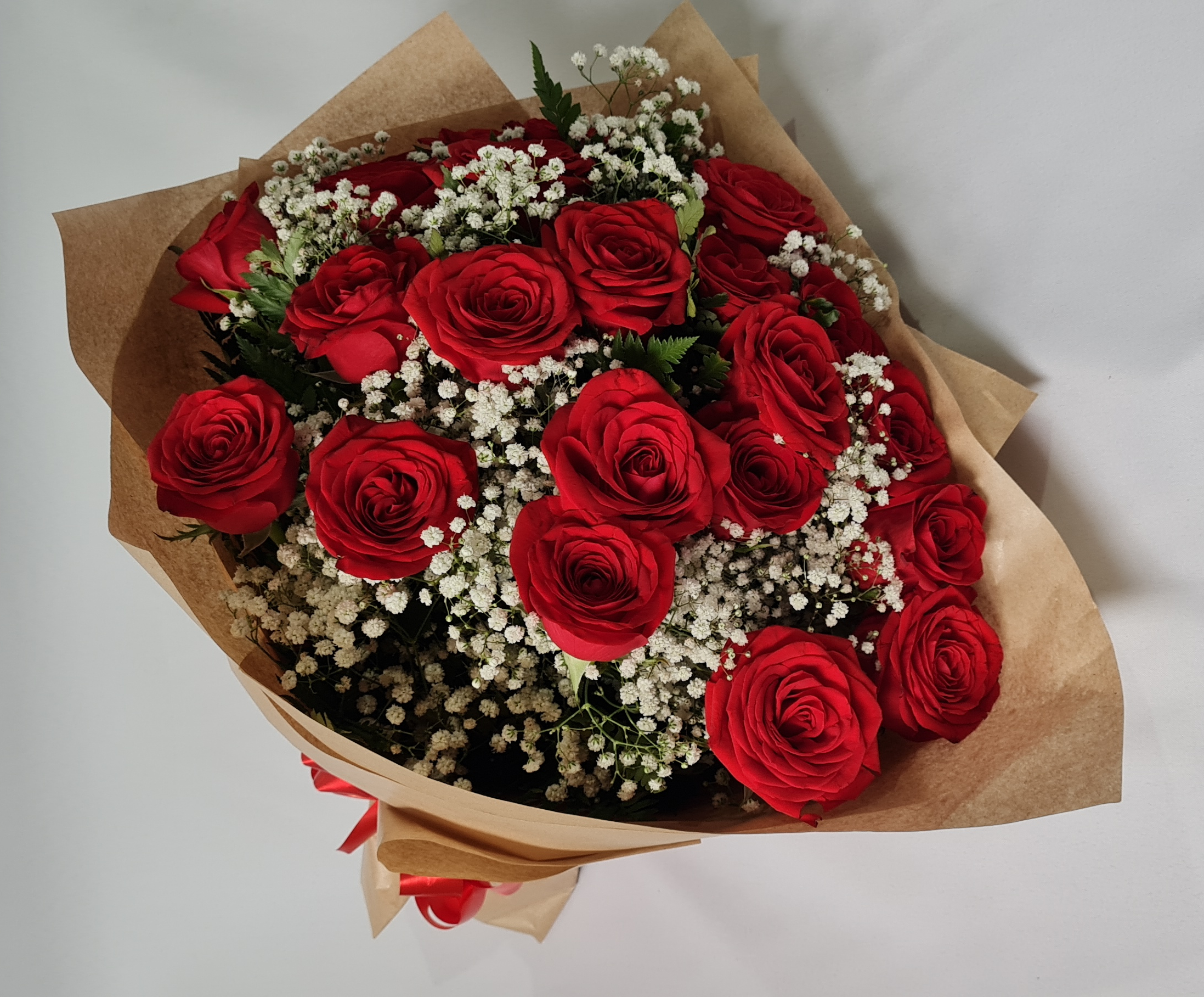 Demonstre seu amor com esta forma romântica que nunca sai de moda: um belo buquê de rosas vermelhas. As rosas são as flores mais presenteadas, e neste buquê elas estão em sua versão mais tradicional, um presente que sempre emociona e encanta.